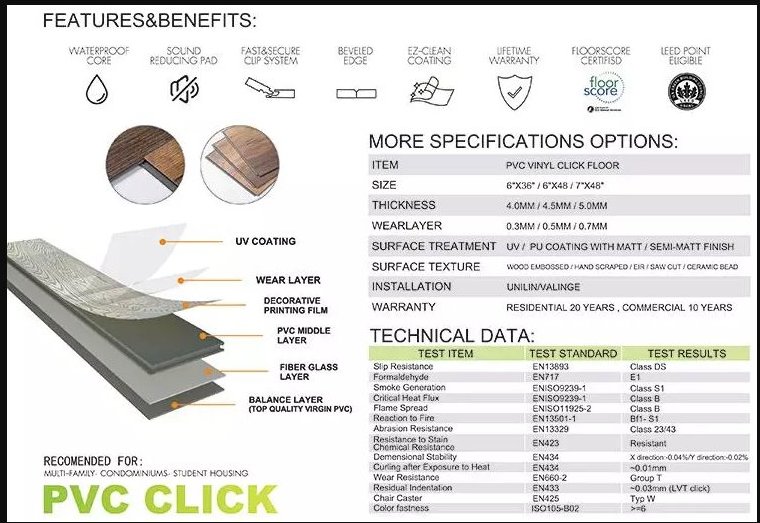 Thickness: 4mm,5mm,6mm wearlayer: 0.3mm,0.5mm,0.7mm